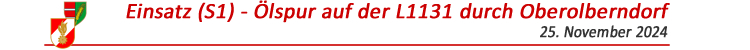 Am 25. November wurden wir um 08:45 Uhr zu einem Schadstoffeinsatz mittels Sirene und Blaulicht-SMS alarmiert. Es wurde eine Ölspur vom Bahnhof durch die Ortschaft bis zur Kreuzung der L1131 mit der L31 gemeldet. 2 Kameraden rückten daraufhin mit dem Löschfahrzeug aus.