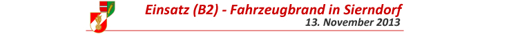 | Aus ungeklärter Ursache geriet am 13. November in einer Scheune in Sierndorf/Johannesgasse ein Unimog in Brand. Es wurde Alarmstufe B2 ausgelöst, wodurch die Feuerwehren aus Sierndorf, Unterhautzental und Oberolberndorf alarmiert wurden. Den Feuerwehren gelang es unter schweren Atemschutz den Band unter Kontrolle zu bringen und so ein Ausbreiten der Flammen auf benachbarte Objekte zu verhindern. Der Unimog brannte letztlich vollständig aus. Nach rund 2 Stunden konnten die Feuerwehren wieder in ihre Feuerwehrhäusern einrücken und die Einsatz-bereitschaft herstellen.