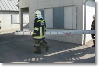 Die 2. Station im Bauernhof war die Menschenrettung aus Höhen mittels Leiter. OBI Markus Schauhuber