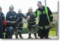FT Günther Thin erklärte den Feuerwehrkameraden die Menschenrettung aus einem Silo. Dabei wurden