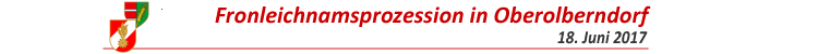 | Am Sonntag, dem 18. Juni fand in Oberolberndorf wieder die traditionelle Fronleichnamsprozession statt. Dabei wird der Himmel von den Kameraden der FF Oberolberndorf getragen und auch begleitet. Nach der Prozession durch den Ortskern war beim Feuerwehrhaus für Speis und Trank bestens gesorgt. Insgesamt 13 Mitglieder der FF Oberolberndorf nahmen an der Veranstaltung teil. |