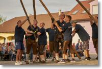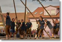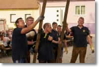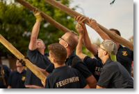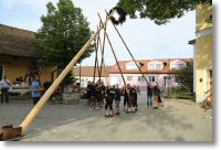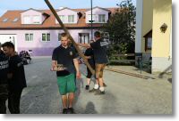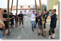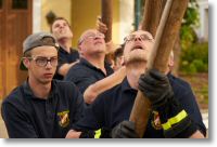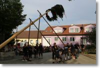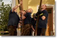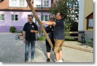 auch schon wieder beim Feuerwehrhaus ein, wo bereits alles für das Aufstellen des Maibaumes vorbereitet