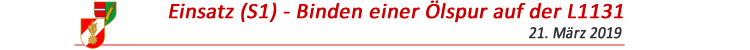 auf der L1131 zu einem PKW mit defekter Vorderradaufhängung. Das Fahrzeug wurde vom Pannendienst bereits abgeschleppt, unsere Arbeit beschränkte sich damit nur mehr auf das Binden der rund 10 Meter langen Ölspur. Wir sicherten dazu die Stelle ab und brachten Ölbindemittel auf die Fahrbahn auf.