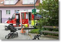 einem Mistkübelbrand, die von den Besuchern auch selbst gelöscht werden konnten, wurde von den Kameraden der FF Oberolberndorf noch ein Fettbrand vorgezeigt. In eine mit rund einem 1/4l brennenden Speiseöl gefüllten Pfanne wurde 1/4l Wasser geleert. Die Fettexplosion danach beeindruckte alle Besucher, bei welch kleinen Mengen schon eine derartige Stichflamme zu sehen ist. Die 4 Station war der Zerknall einer
