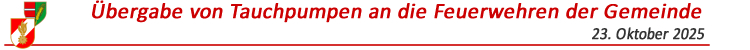 Am 23. Oktober fand im Feuerwehrhaus Sierndorf die alljährliche Besprechung aller Kommanden der Feuerwehren der Marktgemeinde Sierndorf statt. In diesem Zuge wurde an alle 9 Feuerwehren jeweils eine Aus der Hochwasserkatastrophe im September 2024 hat sich gezeigt, dass Pumpen dieser Art ein unverzichtbares Einsatzgerät sind. Die nun übergebenen Tauchpumpen haben eine Förderleistung von bis zu max.2.200l/min. Ergänze wurde die Tauchpumpe durch 2 Stück A-Druckschlauch 20m. Es standen 2 Pumpentypen zur Auswahl, dabei hat unsere Feuerwehr sich für das Modell Mast T20 entschieden. Somit istein großer Schritt getan, dass in Zukunft die Bevölkerung der Marktgemeinde Sierndorf noch besser gegen derartige Katastrophen geschützt werden kann. |